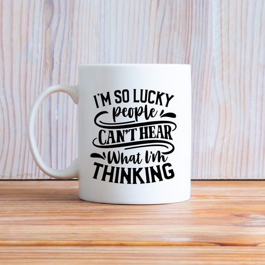 Funny Sarcastic Mug - I'm So Lucky People Can't Hear What I'm Thinking 11oz